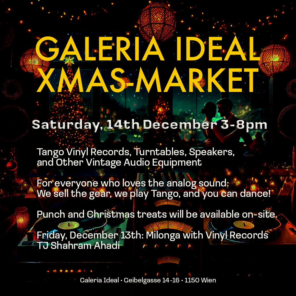 Martin Haslehner und ich, Don Xello, haben zu volle Lager und das wollen wir in dieser besinnlichen Zeit teilen. Aus diesem Grunde veranstalten wir am Samstag, den 14. Dezember eine Afternoon Milonga mit einem angeschlossenen Weihnachtsmarkt.